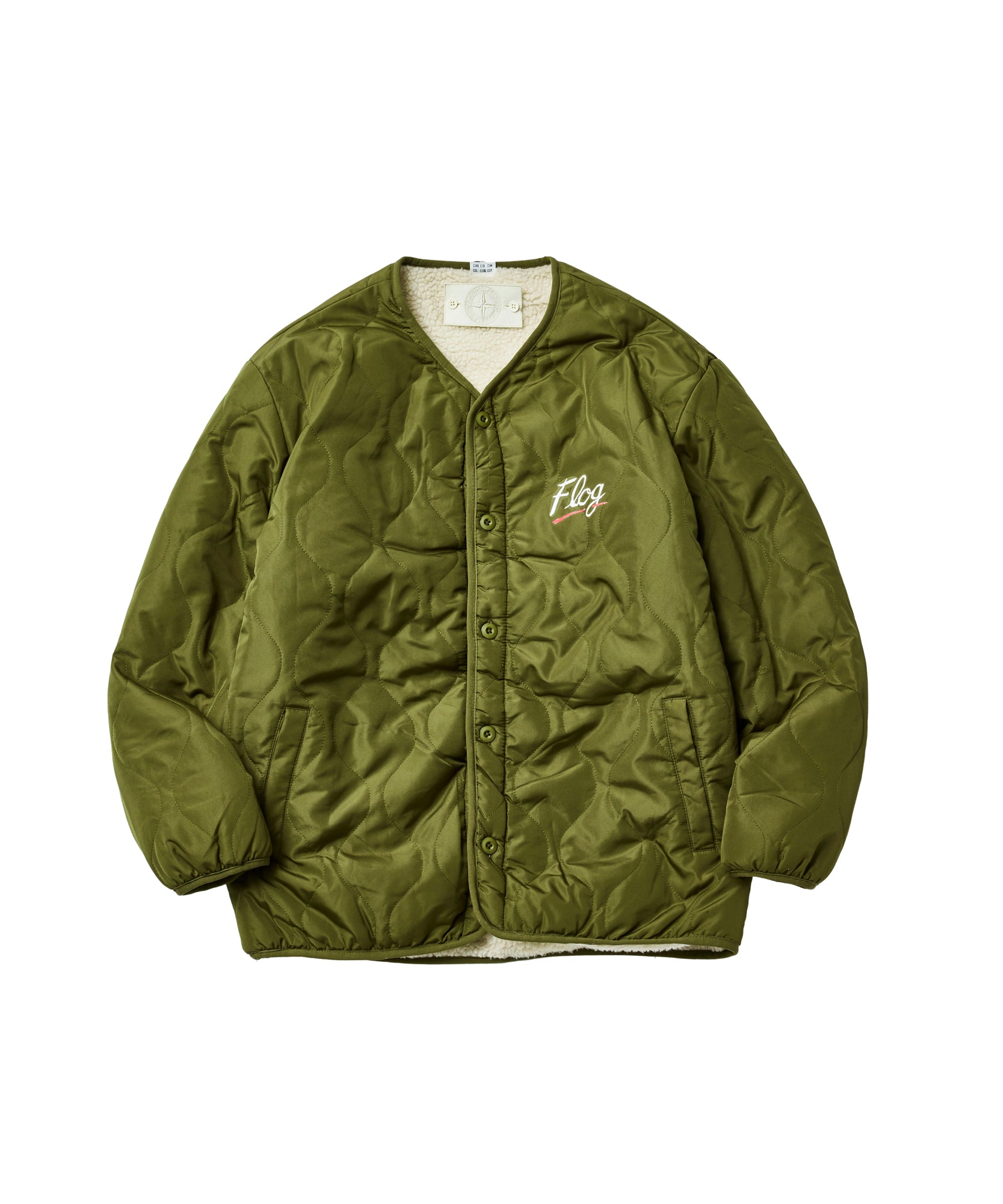 The front is a gourd quilted outerwear, and the back is made of warm boa material.