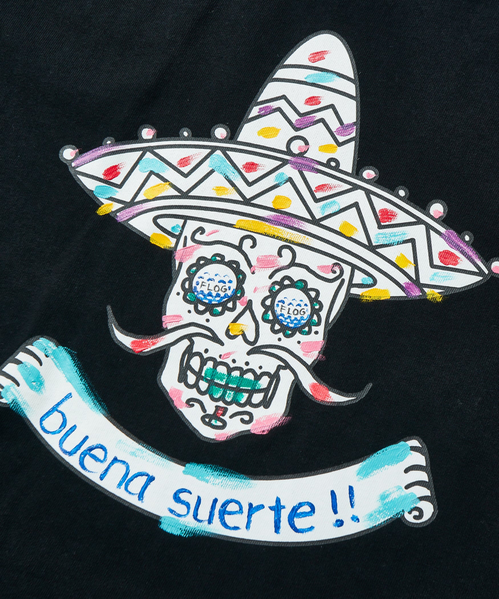 正面にハンドペイントで色付けした、メキシカンスカルがインパクトのある一枚。