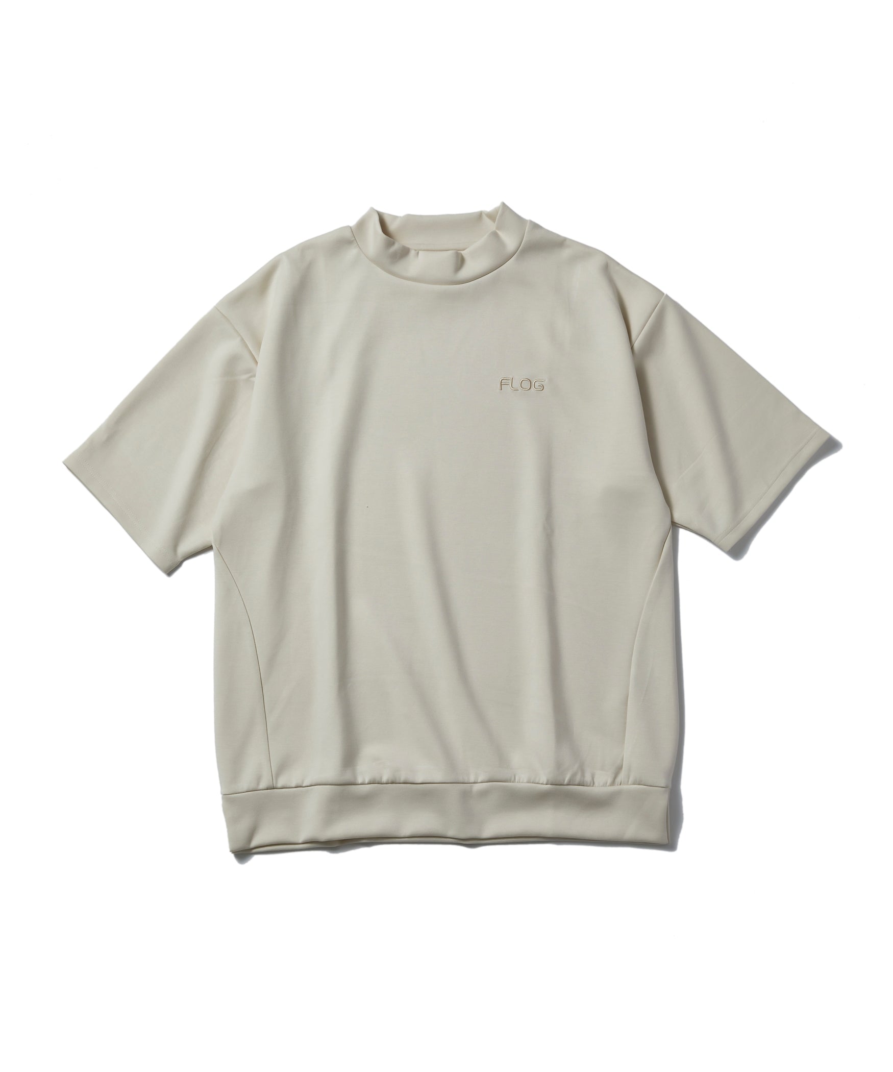 光沢感のあるポンチ素材のモックネックカットソー。
