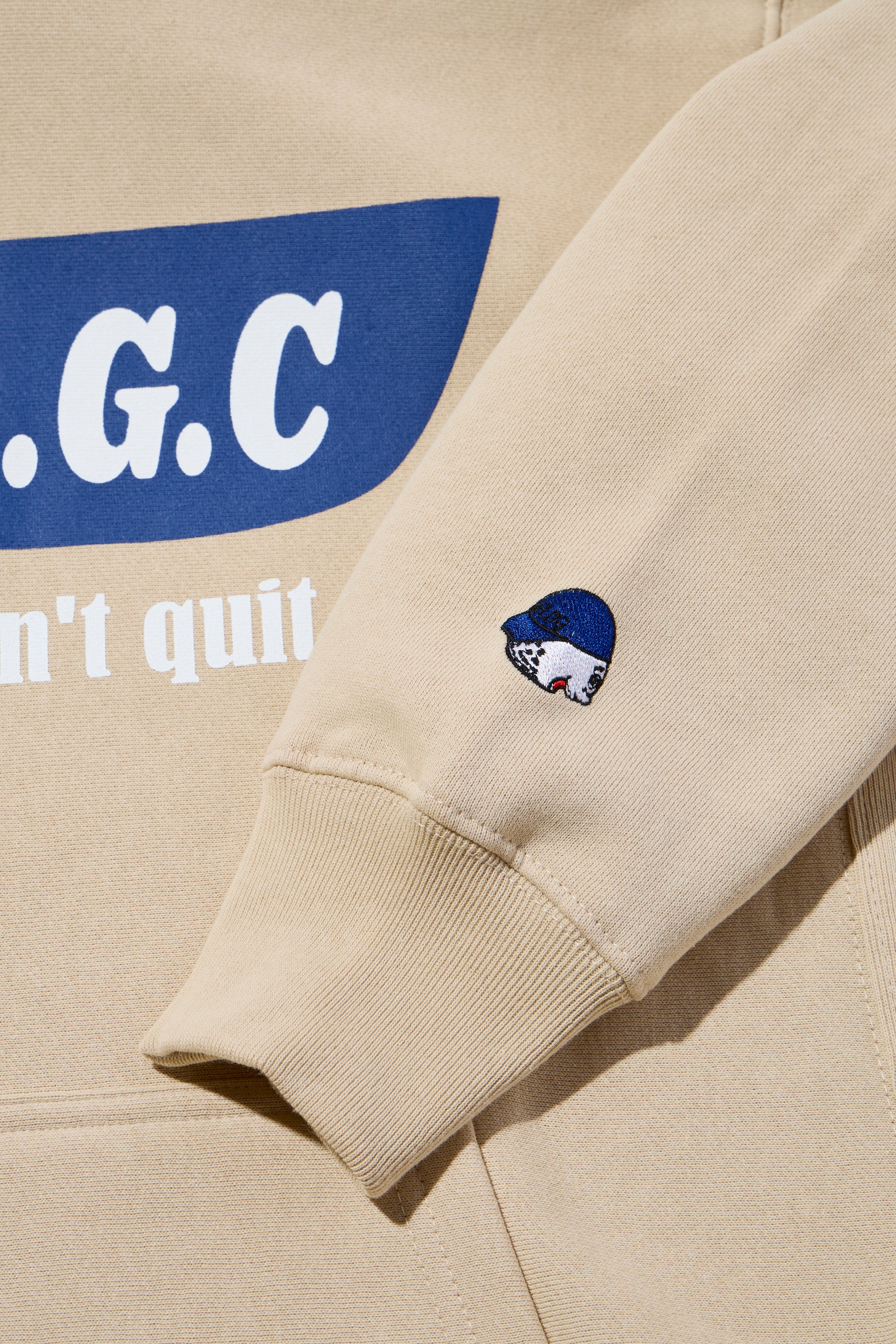袖には、胸のプリントと色合わせしたフロギー君刺繍がワンポイント入っています。